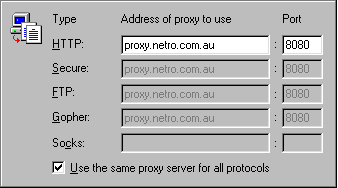 Start up Internet Explorer, then click on View, Options. Go to the Connection tab, and select Connect through a proxy server. Type in proxy.netro.com.au on port 8080 for all the services (except for Socks) as shown here.